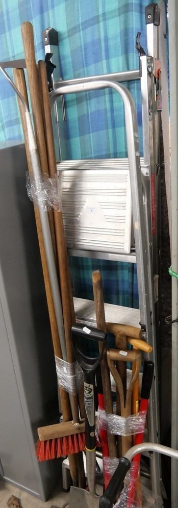 Assorted Garden Tools & 2 Step Ladders